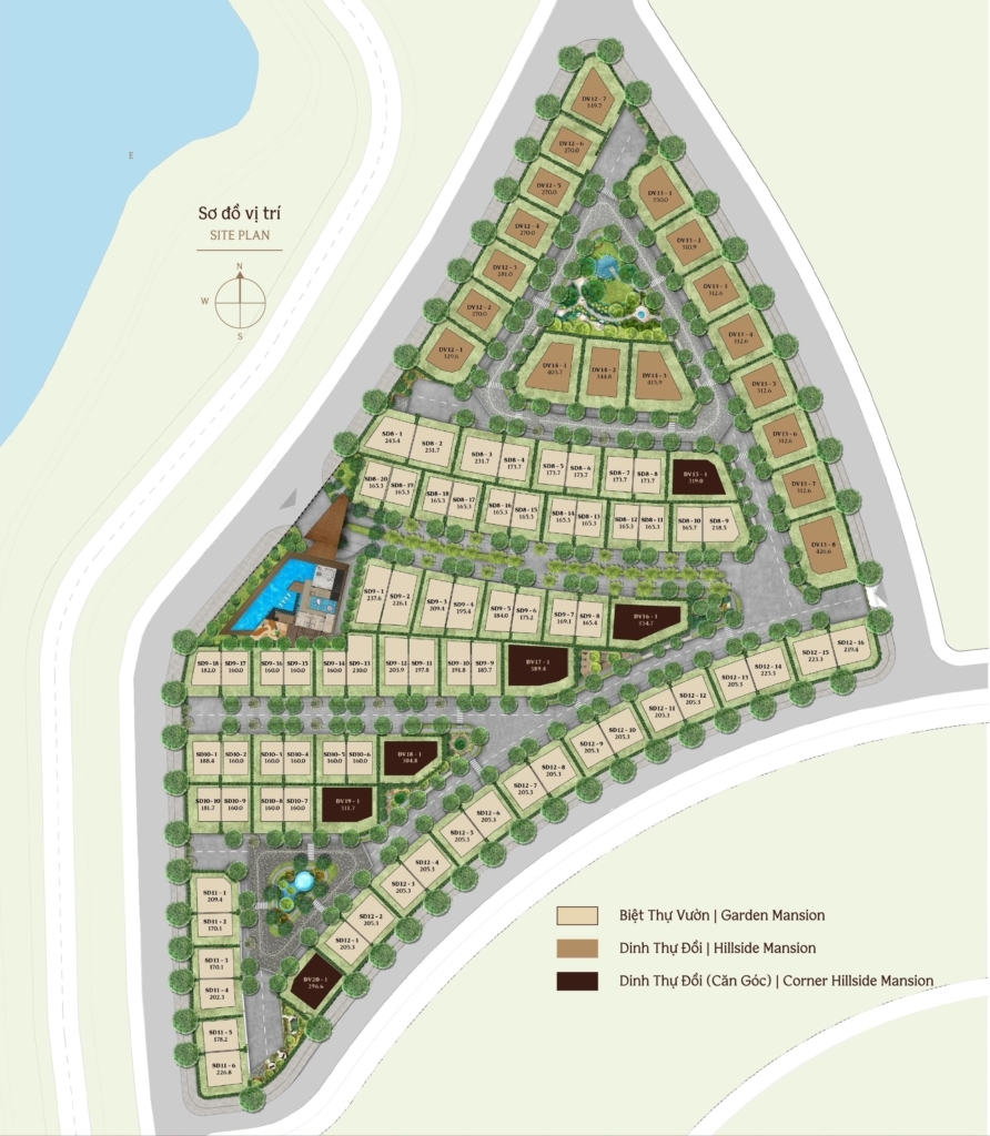 | Loại Hình | – Garden Mansion: 160 – 243m² – Hillside Mansion: 270 – 427m² |