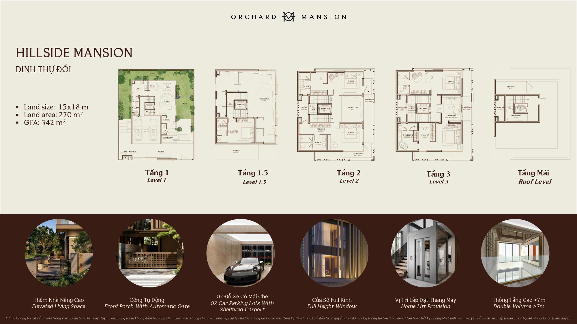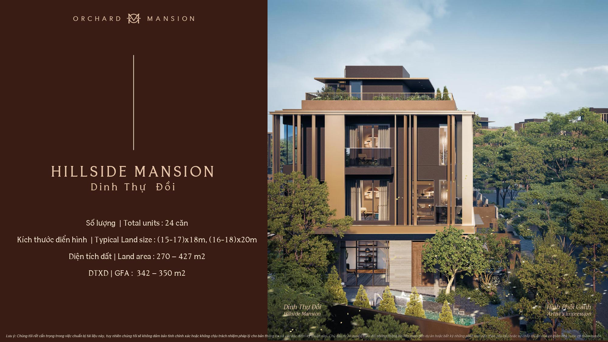 | Loại Hình | – Garden Mansion: 160 – 243m² – Hillside Mansion: 270 – 427m² |